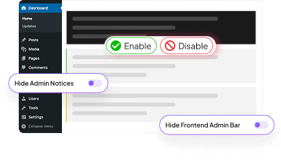 Simplify your WordPress dashboard by hiding unnecessary admin settings, notifications etc.