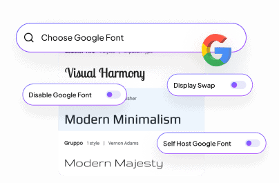 To improve your site’s performance, you can self-host Google Fonts locally, enable Display Swap, or completely disable Google Fonts and load system fonts instead.