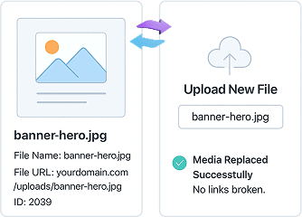 Update your media files without changing URLs or reuploading—perfect for quick content tweaks.
