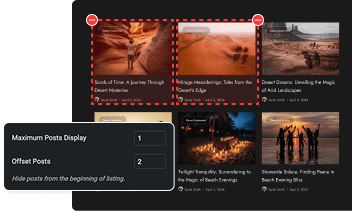 Limit the number of posts shown and skip initial ones to create smart layouts like featured + recent or staggered content sections.