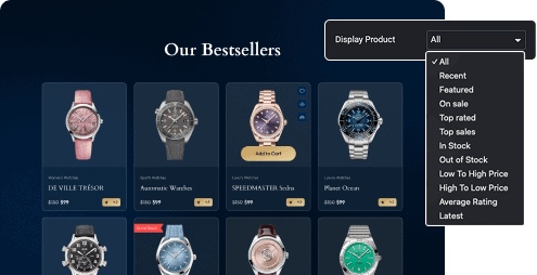 - E-Commerce WebsiteShowcase products by categories, price, popularity, or stock status to build personalized shopping experiences without custom development.