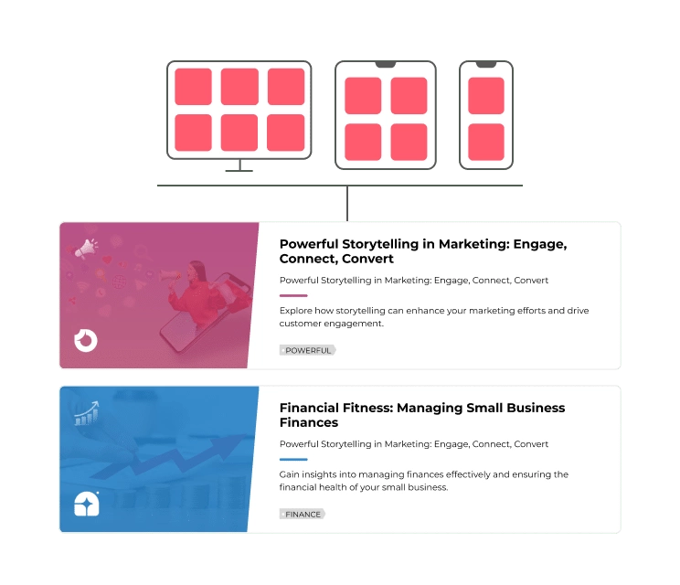 Use Smart Loop Skins to design and customize grid layouts with full control over HTML and CSS, giving you the freedom to create unique designs.