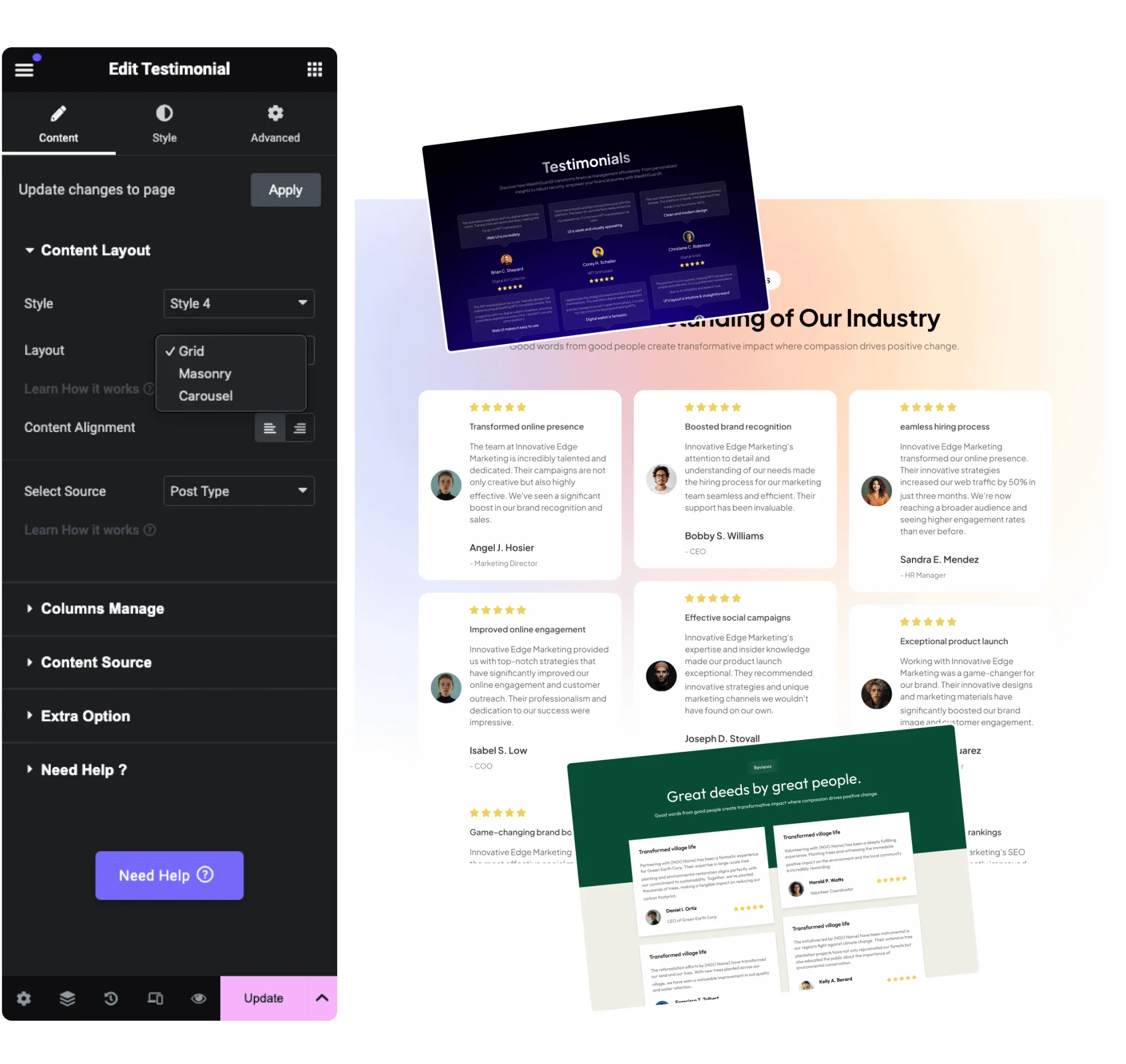 Live Demos of Elementor Testimonial Masonry