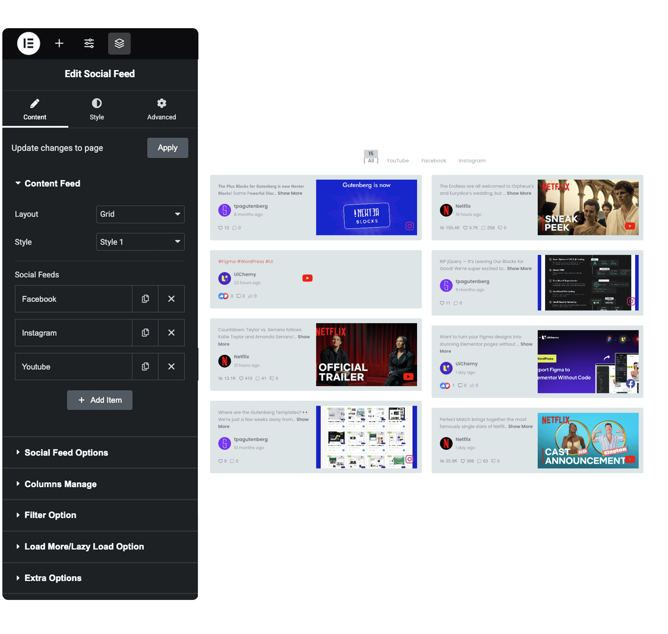 Combine your Multiple Social Feeds into one feed with filtration options to put all your social media content at one place.