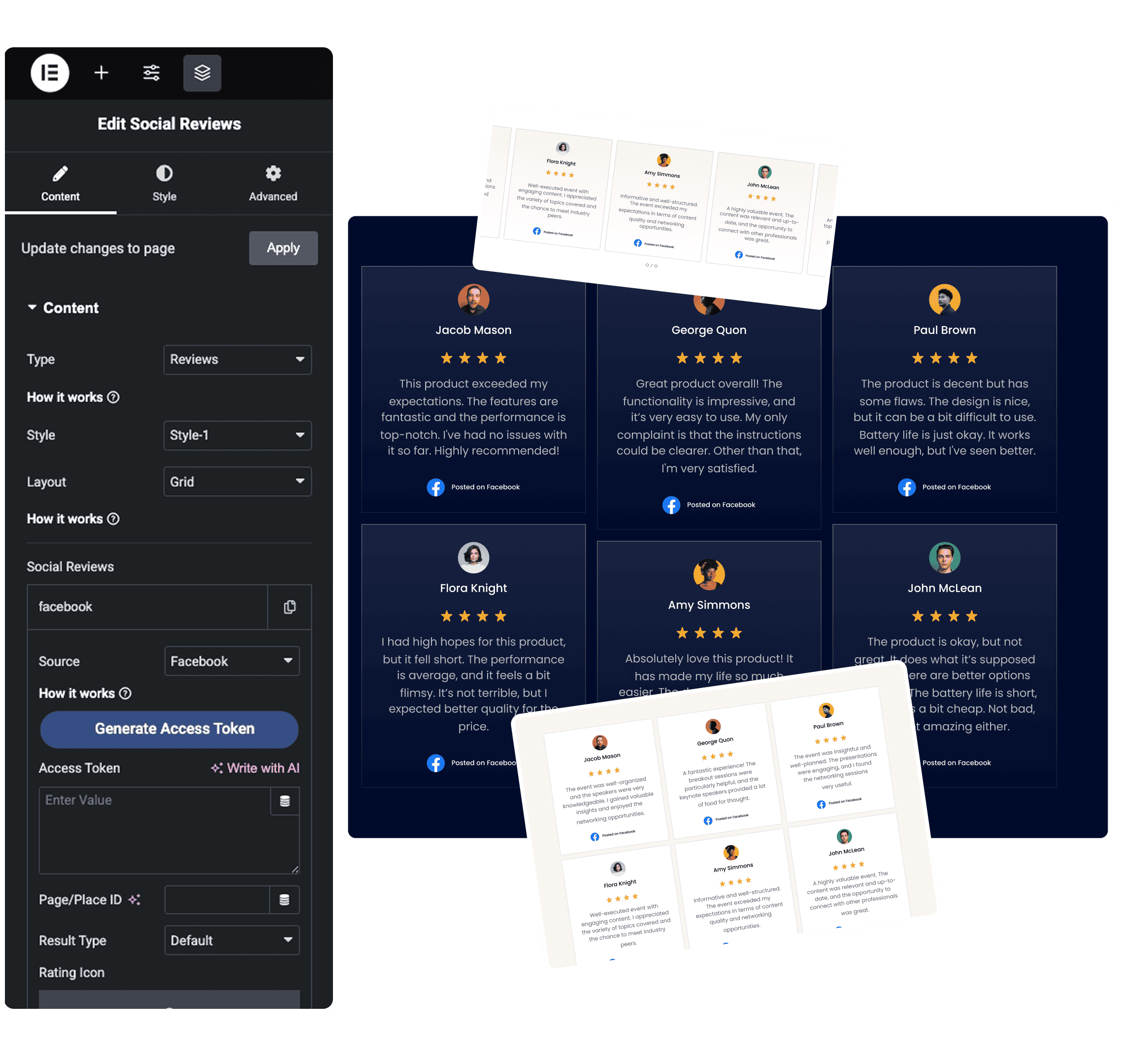 No limit on embedding social reviews on a website, display all of them at once. Add as many custom reviews as you want.