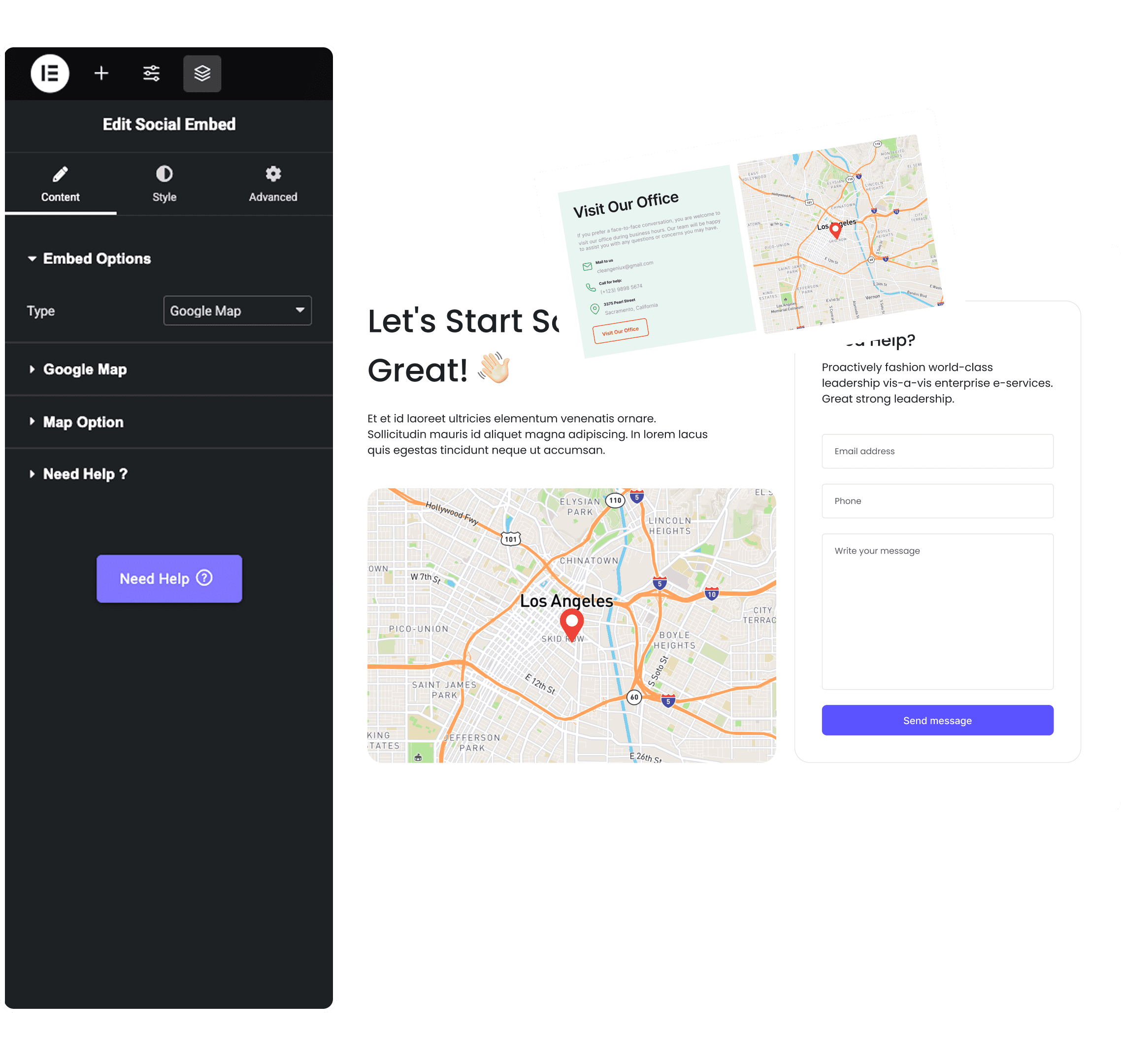 Choose your map style from 6+ unique maps and help your customers to reach your office.