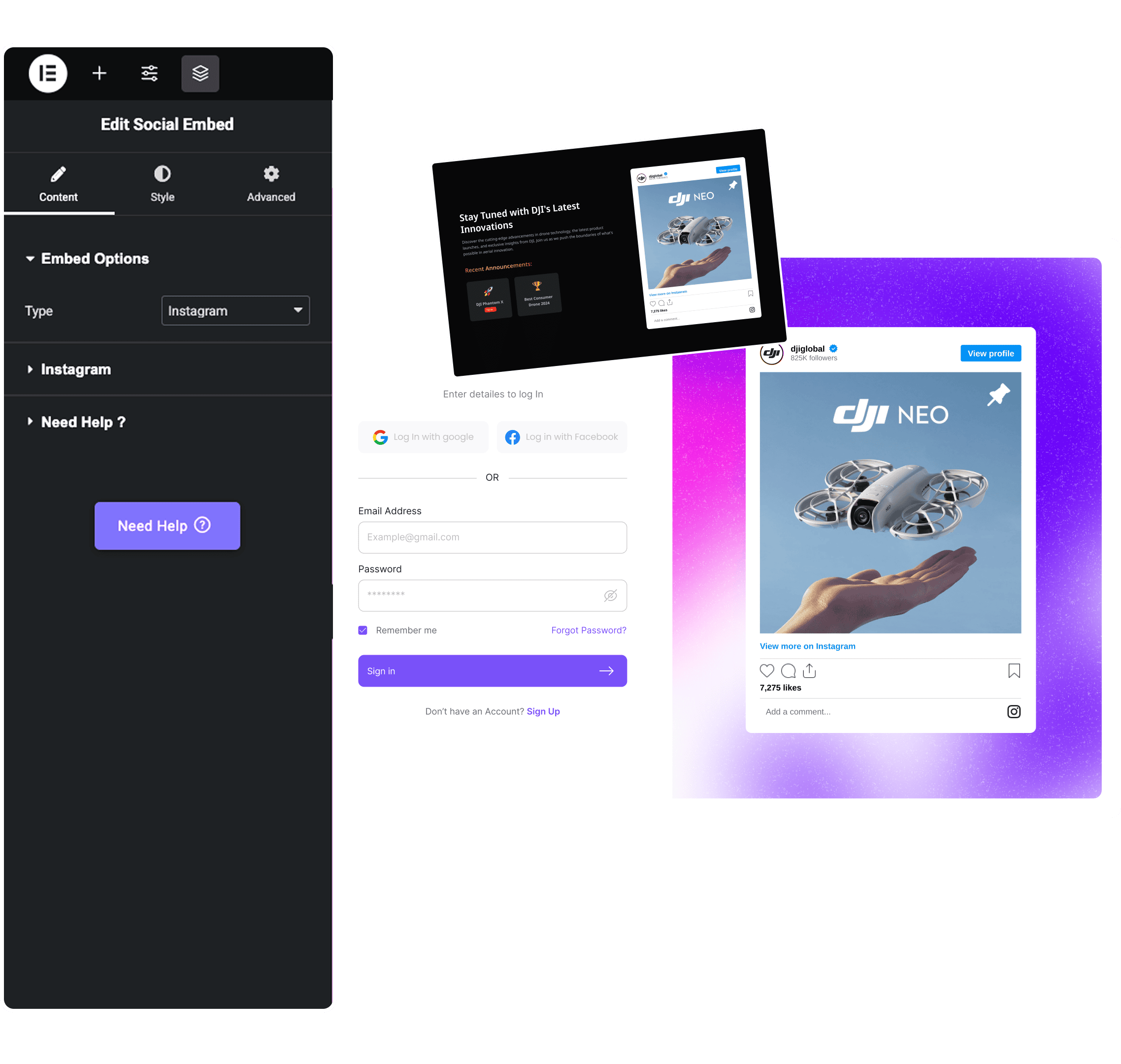 Embed your social media posts / feed on your webpage directly by using Social Embed Elementor widget without any authentication or hassle. Just select your social media platform and choose the feed type you want, that's it !!!