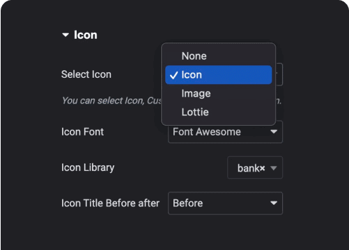 Add icon lottie or image in pie chart pie chart for elementor from the plus addons for elementor