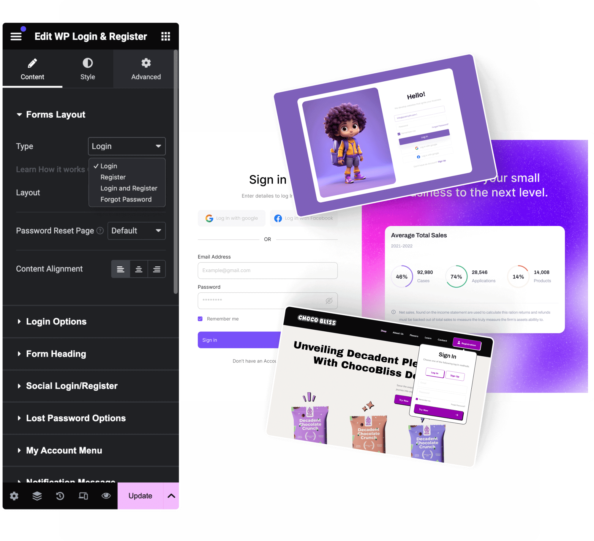Create and customize your Login Forms with Elementor Login Form widget.