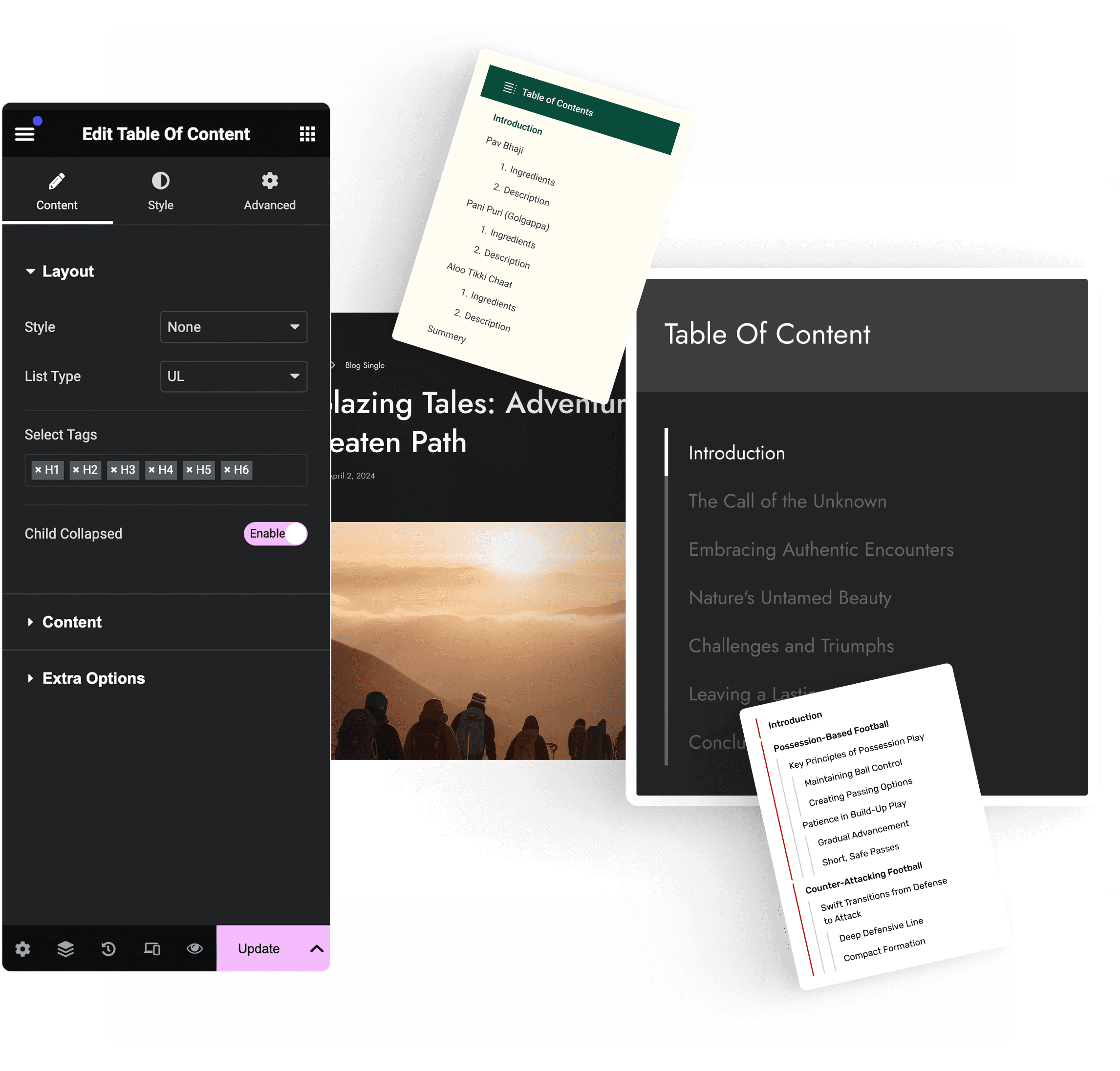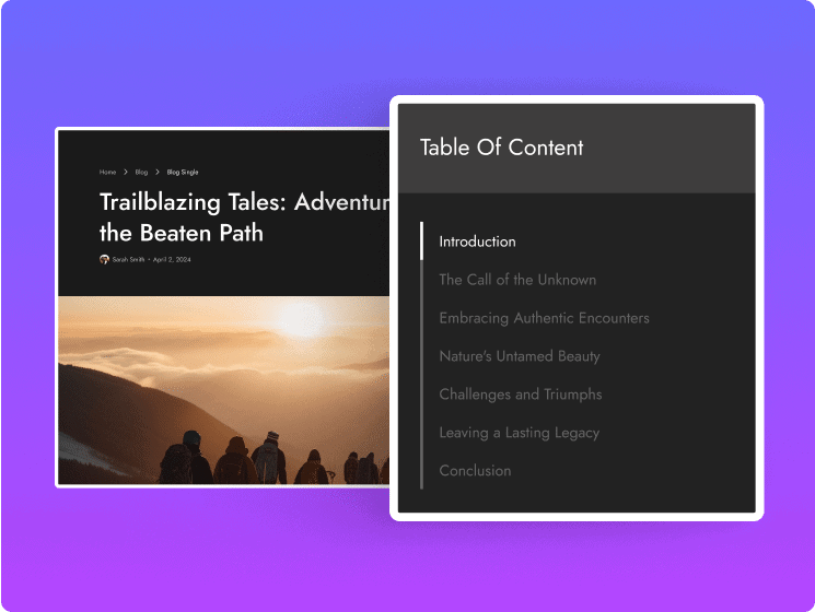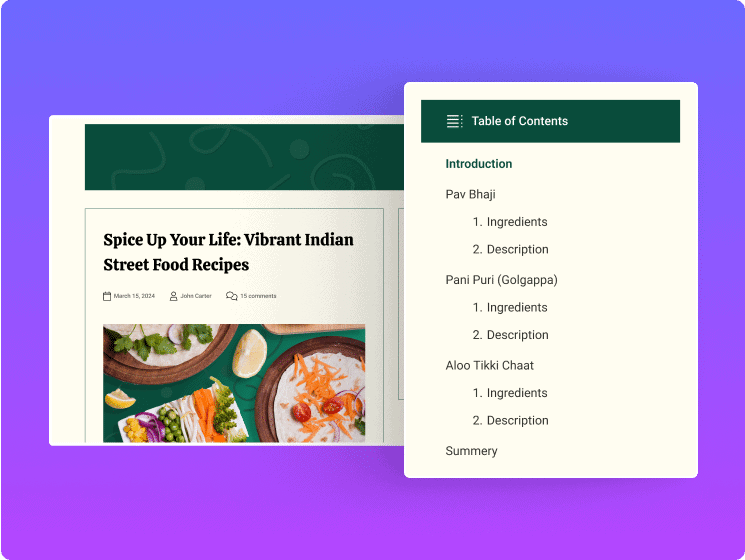 Help your site visitors find what they want using the Elementor Table of Contents widget. Choose from multiple styles, customize titles and icons, and improve navigation with smooth scroll, toggle, and fixed options.