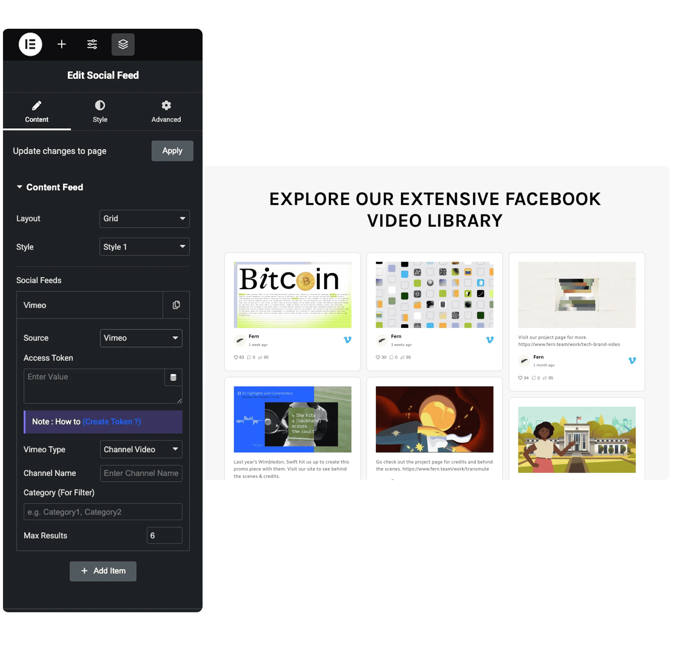 Vimeo Account Widget for Elementor