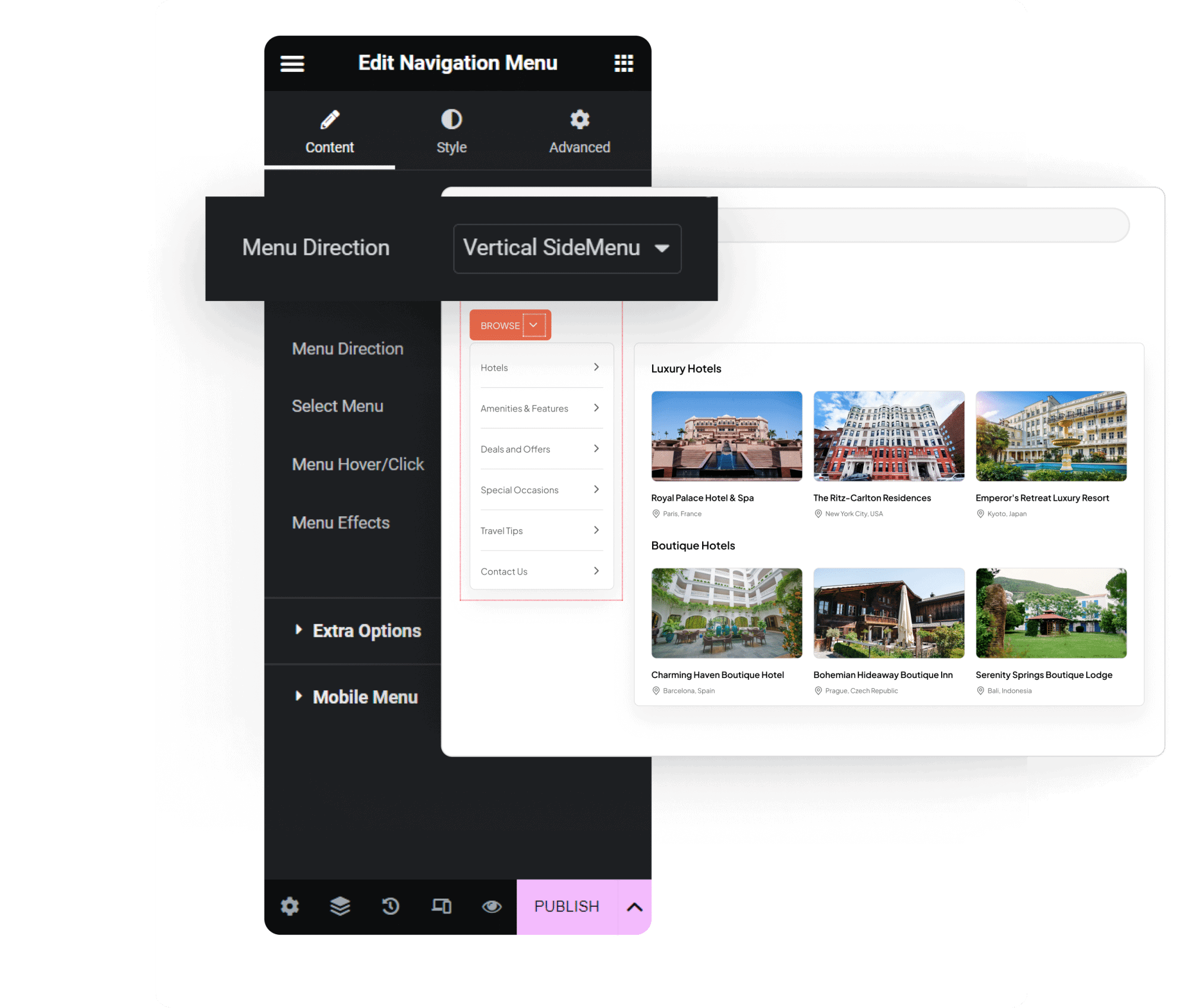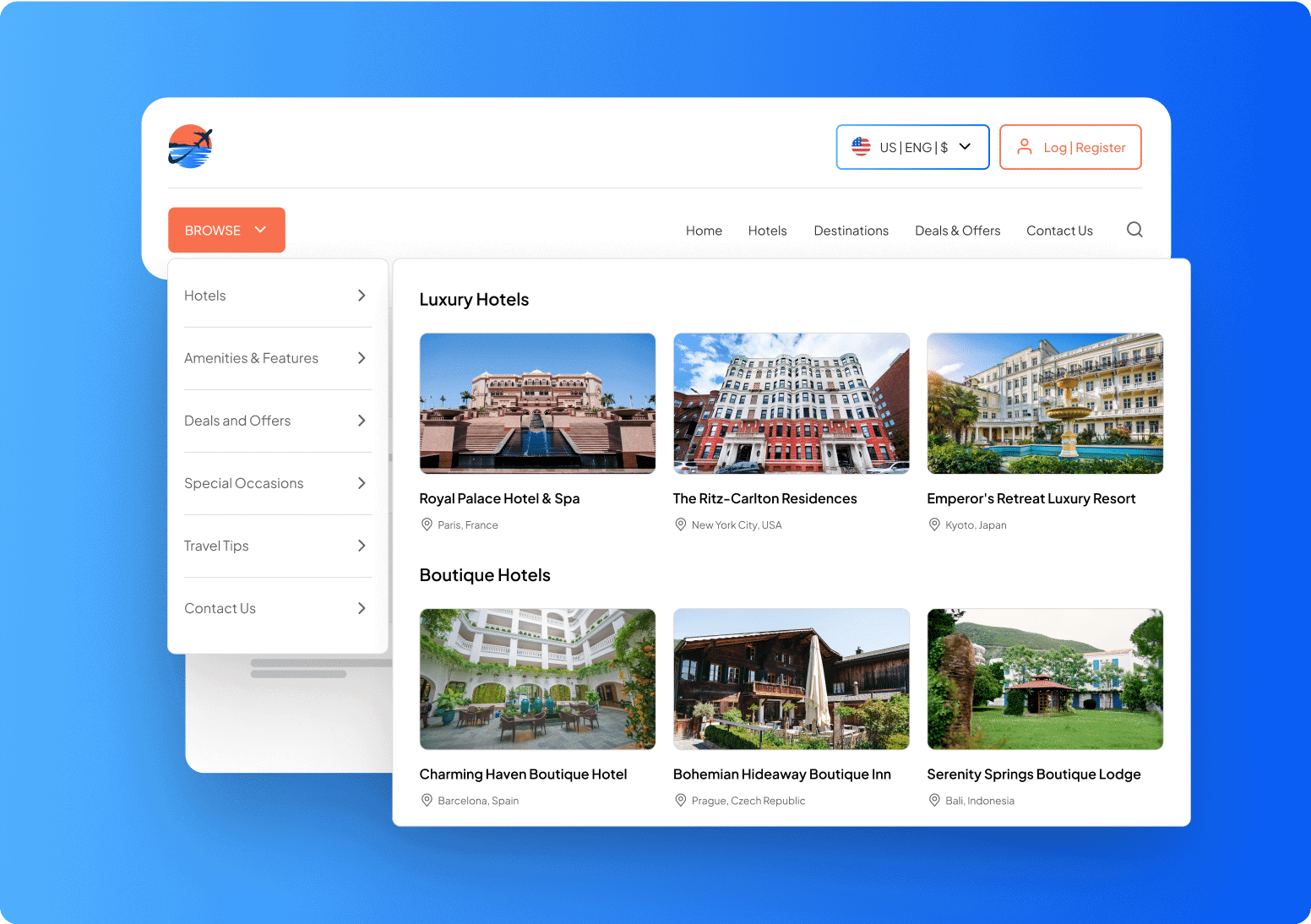 - Travel and HospitalityBoost your e-commerce sales by using Elementor Mega Menus to showcase categories, subcategories, and products, making it easy for customers to navigate and find what they're looking for.