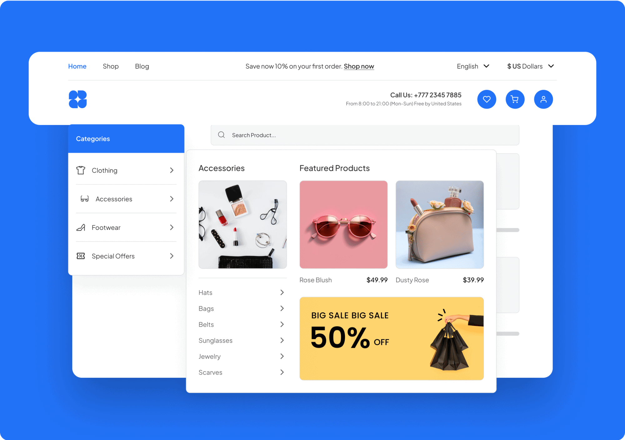 - Educational InstitutionsBoost your e-commerce sales by using Elementor Mega Menus to showcase categories, subcategories, and products, making it easy for customers to navigate and find what they're looking for.