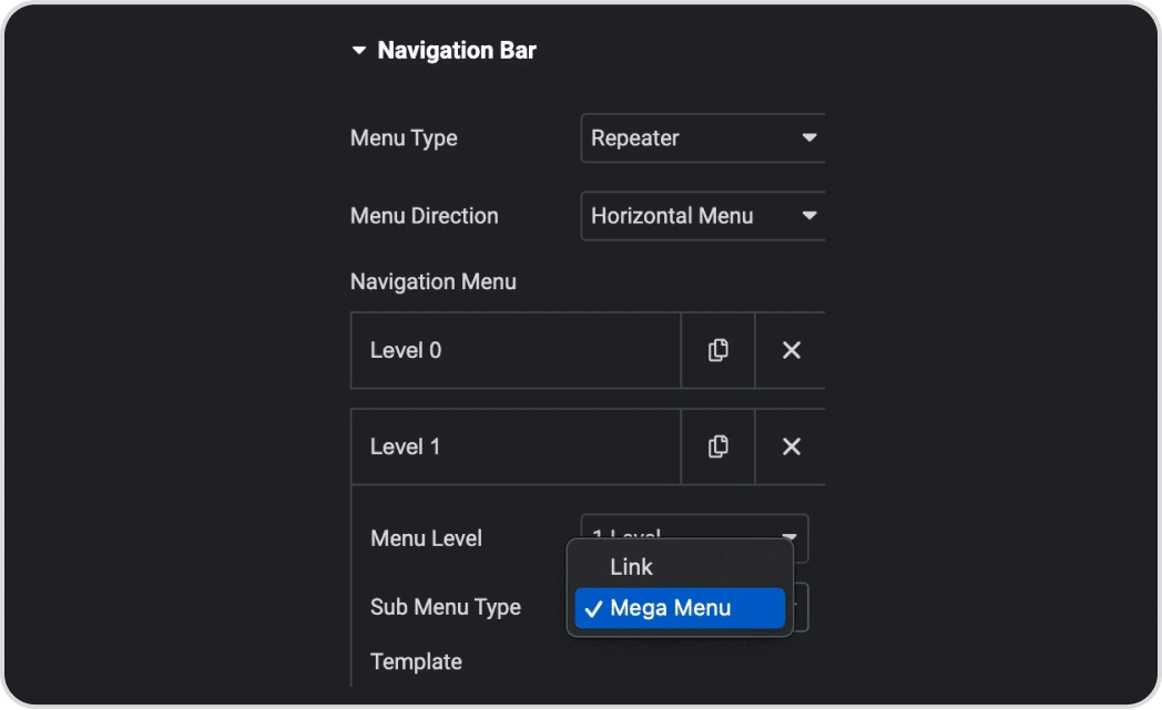 Create Elementor Templates for Mega Menu Dropdown Content.