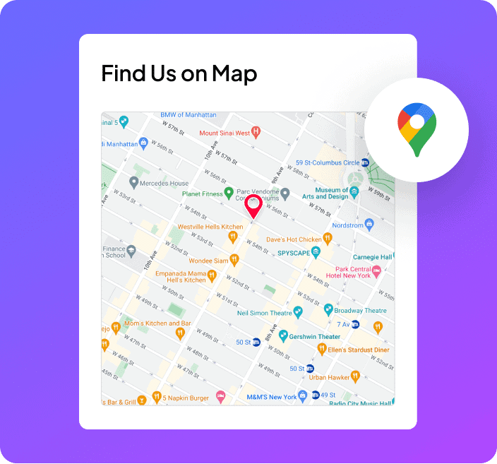 Help visitors find your location by adding a Google Maps widget to the Mega Menu section.