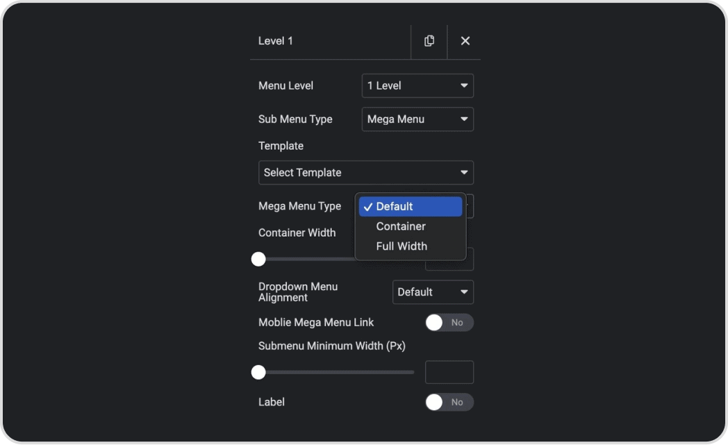 Organize your E-commerce website content by adding a category listing to the Mega Menu section for easy navigation.