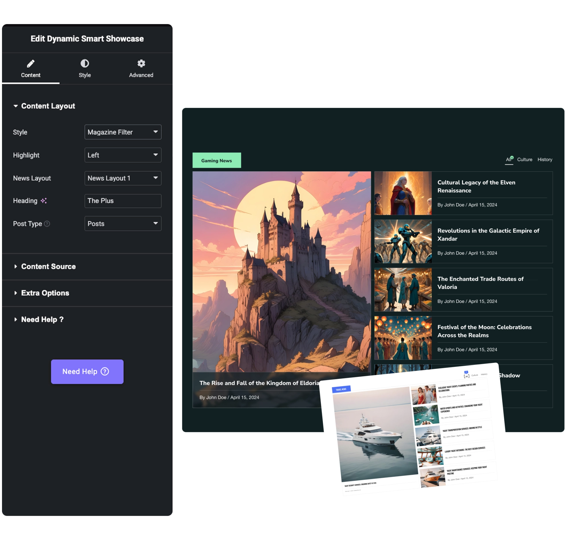 Before after customize everything dynamic magazine filter for elementor from the plus addons for elementor