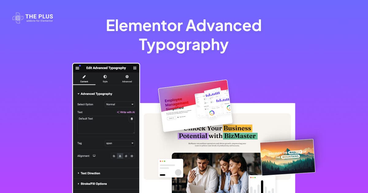 Customize everything advance typography advanced typography for elementor from the plus addons for elementor
