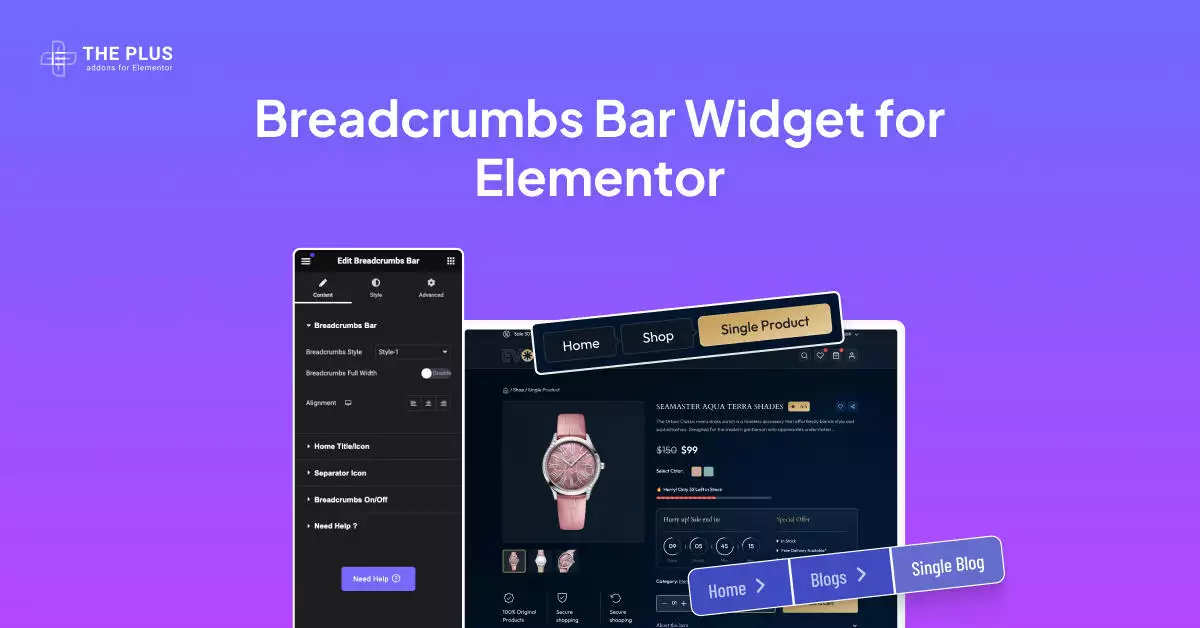 Multiple breadcrumb styles with control breadcrumbs bar for elementor from the plus addons for elementor