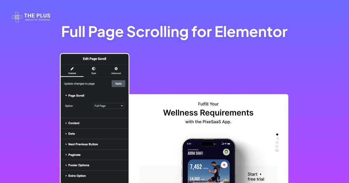 Before after customize everything full page scrolling for elementor from the plus addons for elementor